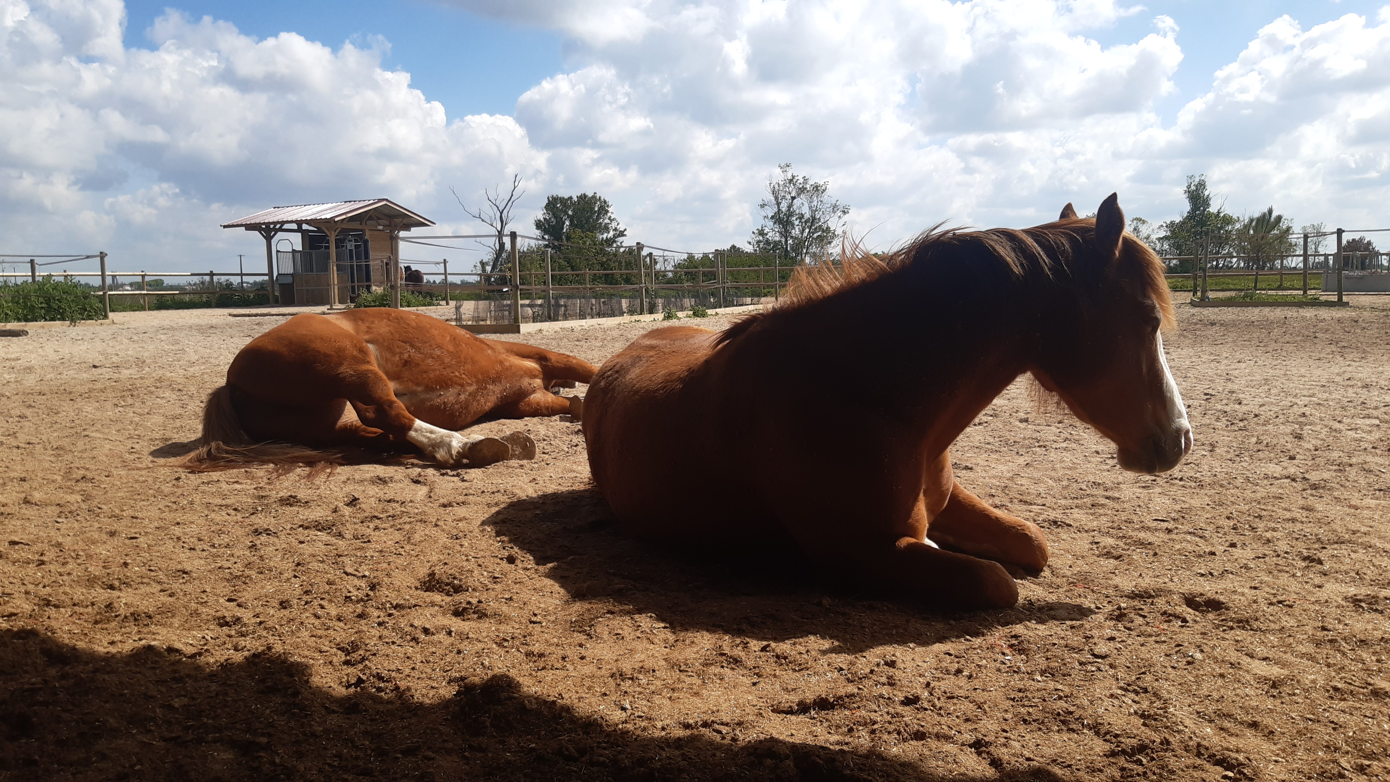 Les équidés vivent en troupeau dans une zone stabilisée de 4000 m² avec abris sur laquelle sont répartis les divers points d’intérêts (râteliers à foin, distributeur de granulés, zone sablée, abris…) afin de favoriser leurs déplacements et préserver l’harmonie du troupeau. L’été, l’espace de vie est ouvert progressivement sur une prairie de 4 hectares pour la mise à l’herbe.